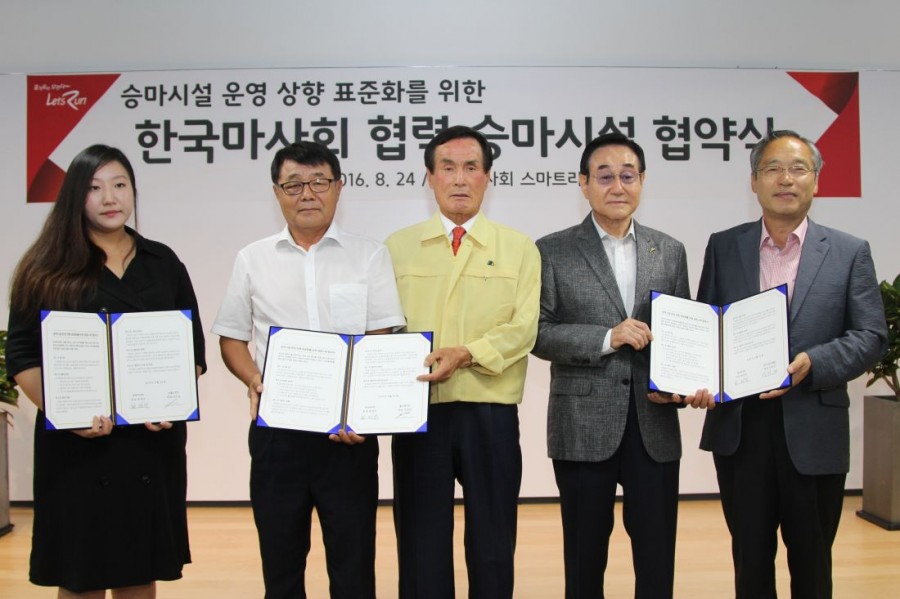 Çѱ¹¸¶»çȸ°¡ 8¿ù 24ÀÏ º»°ü °Ç¹° ½º¸¶Æ®¶ó¿îÁö¿¡¼ ¡®Çѱ¹¸¶»çȸ Çù·Â ½Â¸¶½Ã¼³ Çù¾à½Ä¡¯À» °³ÃÖÇß´Ù. Çѱ¹¸¶»çȸ Çù·Â ½Â¸¶½Ã¼³Àº ¾ÈÀü, À¯¼Ò³â, ½Â¿ë¸¶ Á¶·Ã µî °¢ 3°³ ºÎ¹®¿¡ Æ¯ÈµÈ ¿ì¼ö ½Â¸¶Å¬·´ 23°³¼Ò·Î ±¸¼ºµÆ´Ù. Çѱ¹¸¶»çȸ´Â ±¹³» ½Â¸¶»ê¾÷ÀÇ ÁúÀû °³¼±À» À§ÇØ ½Ã¼³ ¹× ¿î¿µ»ó Ç¥ÁØÀ» Á¦½ÃÇϰڴٴ ¸ñÀûÀ» °¡Áö°í Áö³ 6¿ùºÎÅÍ Çù·Â ½Ã¼³À» °ø¸ðÇß´Ù.