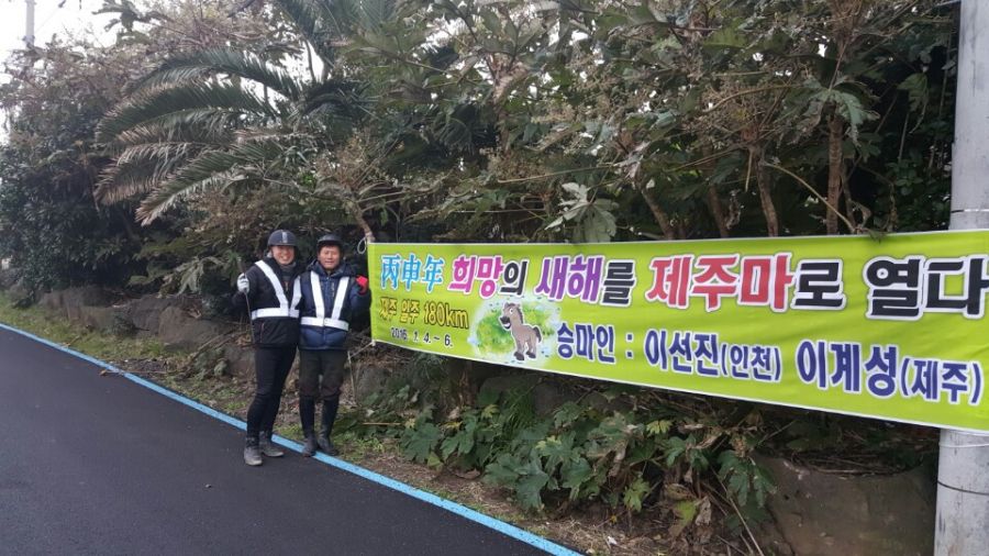 º´½Å(ܰãé)³â »õÇØ¸¦ ¸Â¾Æ Á¦ÁÖ¿Í ÀÎõ Ãâ½ÅÀÎ 60³â»ý µ¿°©³»±â ½Â¸¶ÀÎ, À̰輺 ¾¾¿Í À̼±Áø ¾¾´Â ÃÑ 180km ±¸°£ÀÇ °Å¸®¸¦ Á¦ÁÖ ¸»°ú ÇÔ²² ¸¶»ó ¼ø·Ê¸¦ ¸¶ÃÆ´Ù.