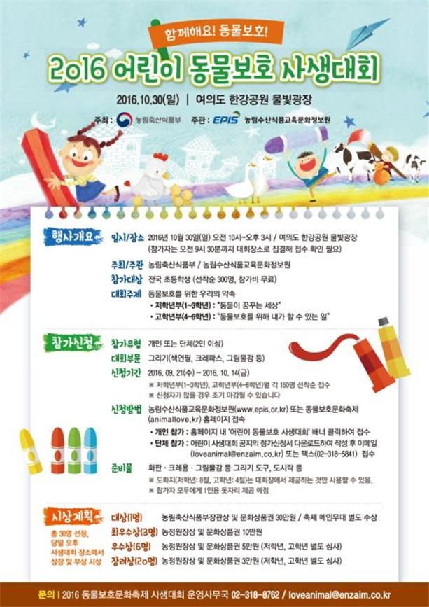 ¡ã³óÃà»êºÎ ÁÖÃÖ, ³óÁ¤¿øÀÌ ÁÖ°üÇÏ´Â ¡®2016 ¾î¸°ÀÌ µ¿¹°º¸È£ »ç»ý´ëȸ¡¯ Æ÷½ºÅÍ(ÀÚ·á Á¦°ø= ³ó¸²Ãà»ê½ÄǰºÎ).