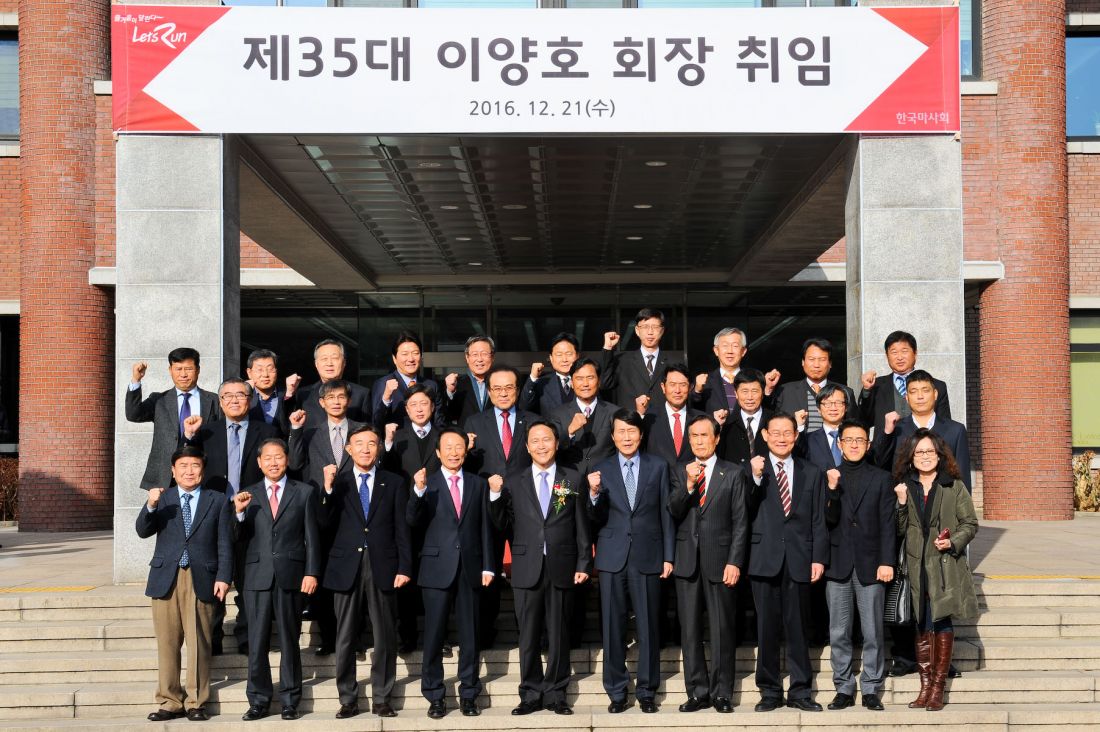¡ã12¿ù 19ÀÏ ±èÀç¼ö Àå°üÀ¸·ÎºÎÅÍ ÀÓ¸íÀåÀ» ¼ö¿©ÇÑ À̾çÈ£ Á¦35´ë Çѱ¹¸¶»çȸÀåÀÌ 21ÀÏ °ø½Ä ÃëÀÓ½ÄÀ» °®°í º»°Ý Çຸ¿¡ µé¾î°¬´Ù. À̾çÈ£ ȸÀåÀº 4´ë ÇÙ½É ÃßÁø °úÁ¦·Î ¸»»ê¾÷ À°¼º°ú °æ¸¶Çõ½Å, °í°´°ú ÇöÀå Á᫐ ±×¸®°í ¿ª·® °áÁýÀ¸·Î Çѱ¹¸¶»çȸ°¡ ½Ã´ëÀû º¯È¿¡ ¹ß¸ÂÃç »õ·Î¿î ¹ßÀü Àü±â¸¦ ¸ÂÀÌÇÒ ¶§¶ó°í Çß´Ù.
