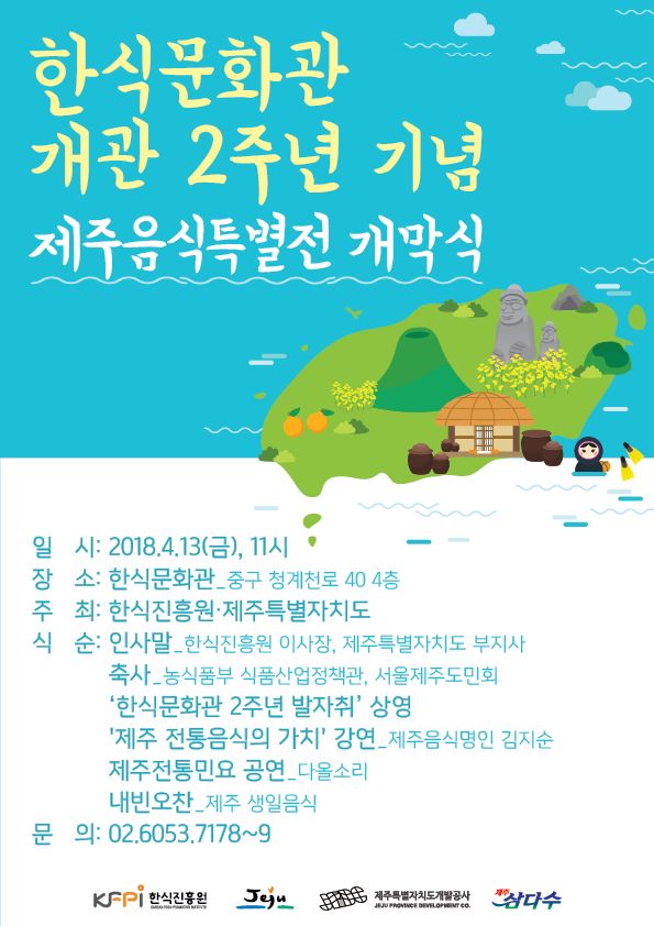 ¡ã ÇѽÄÁøÈï¿øÀº ÇѽĹ®È°ü °³°ü ÁÖ³âÀ» ¸Â¾Æ Á¦ÁÖÆ¯º°ÀÚÄ¡µµ¿Í 4¿ù 13ÀϺÎÅÍ ÇÑ´Þ°£ Áö¿ªÀÇ À½½Ä°ú ½ÄÀç·á¸¦ ³Î¸® ¾Ë¸®±â À§ÇÑ Á¦ÁÖÀ½½ÄƯº°Àü, ¡®Å½¶ó°¡ ¼±¹°ÇÑ ÀÚ¿¬ÀÇ ¸À¡¯À» °øµ¿ °³