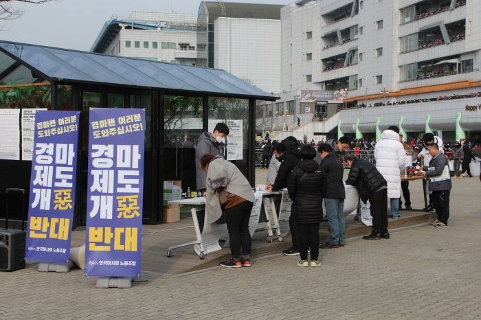 Çѱ¹¸¶»çȸ ³ëµ¿Á¶ÇÕ¡¤¾÷¹«Áö¿øÁ÷ ³ëµ¿Á¶ÇÕ¡¤°æ¸¶Á÷ ³ëµ¿Á¶ÇÕ µî 3°³ ´Üü´Â È£¼Ò¹®À» ¹ßÇ¥ÇÏ°í °æ¸¶Á¦µµ °³¾Ç ¹Ý´ë ¼¸í¿îµ¿À» 2ÁÖ°£ ÁøÇàÇß´Ù. ¨Ï¹Ìµð¾îÇÇ¾Æ ¾Èġȣ
