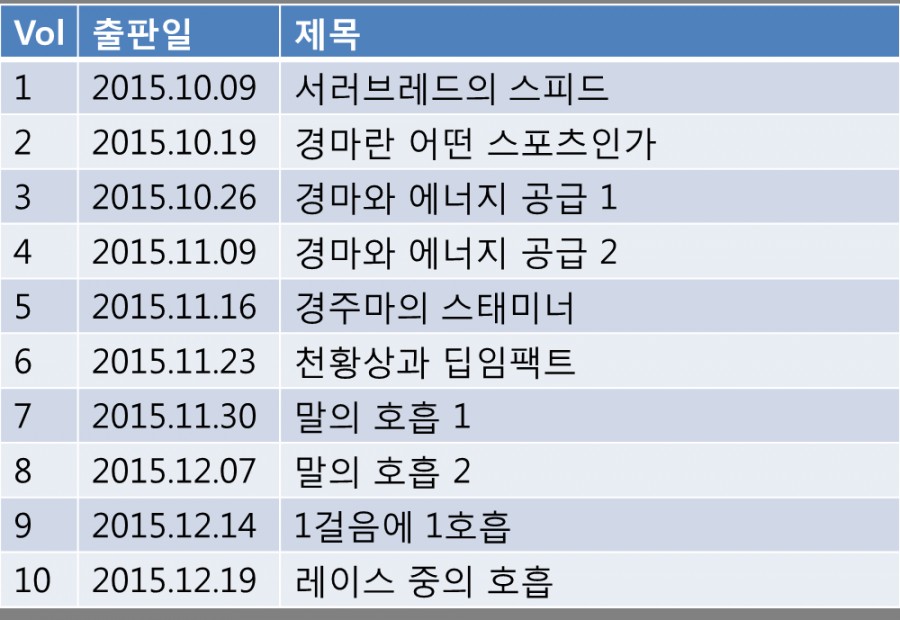 ±â½Â °æ·ÂÀÌ ¾ø´Â °æ¸¶ÆÒµµ °æÁÖ¸¶ÀÇ ´Þ¸®±â¸¦ Á¶±ÝÀÌ¶óµµ ÀÌÇØÇϸé ÀÌ»óÀûÀÎ °æ¸¶¸¦ º¸°í Áñ±æ ¼ö ÀÖ´Ù. ½Â¸®¸¶¸¦ ¿¹ÃøÇÒ ¼ö ÀÖ°í Ã߸®ÀÇ Æø°ú ±íÀ̵µ ´Þ¶óÁø´Ù. ¾ÕÀ¸·Î ¡°°æ¸¶¸¦ ´õ¿í Àç¹ÌÀÖ°Ô¡±¶ó´Â ÁÖÁ¦·Î °æÁÖ¸¶ÀÇ ½ºÆ÷Ã÷°úÇп¡ ´ëÇÑ ÇØ¼³À» ½ÃµµÇÏ·Á ÇÑ´Ù. ±×·¯³ª ÀÌ Ä®·³À» Á¤µ¶ÇÏ´Â µ¶ÀÚµéÀÇ ¸¶±Ç ÀûÁß·üÀÌ ³ô¾ÆÁö´Â °ÍÀº µ¶ÀÚ ÀÚ½ÅÀÇ Ã߸®·Â°ú ³ë·Â ¿©ÇÏ¿¡ ´Þ·È´Ù.