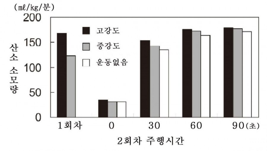 2ȸÂ÷ÀÇ Áֿ ½Ã »ê¼Ò ¼Ò¸ð·®(VO©ü)Àº ¨ç³ôÀº °µµ>¨èÁß°£ °µµ> ¨é¿îµ¿ ¾øÀ½ ¼øÀ¸·Î Áõ°¡°¡ »¡¶ú´Ù(±×¸² 2). ¹Ý´ë·Î ÀÌ»êÈź¼Ò ¹èÃâ·®ÀÇ Áõ°¡´Â ¨ç³ôÀº °µµ>¨èÁß°£ °µµ> ¨é¿îµ¿ ¾øÀ½ ¼øÀ¸·Î Áõ°¡°¡ ´À·È´Ù. Áï, 2ȸÂ÷ ¿îµ¿ °µµ°¡ µ¿ÀÏÇÏ´õ¶óµµ, 1ȸÂ÷¿¡¼ ³ôÀº °µµ·Î ¿îµ¿ÇÑ °æ¿ì°¡ 2ȸÂ÷ ¿îµ¿Àº À¯»ê¼Ò ¿¡³ÊÁö °ø±ÞÀÇ ±Ù¿ø¿¡¼ ÇàÇØÁö°í ÀÖ´Â ¼ÀÀÌ´Ù.
