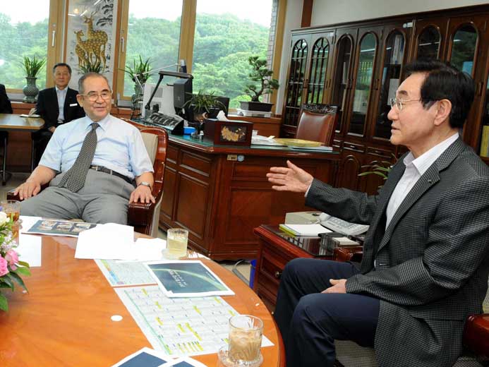 KRAÇѱ¸¸¶»çȸ´Â À̼ö¼º Àü ±¹¹«ÃѸ®¸¦ Á¦3ȸ ¸»»ê¾÷¹Ú¶÷ȸ Á·ÁöÀ§¿øÀåÀ¸·Î À§ÃËÇß´Ù. Çö¸í°ü ¸¶»çȸÀå(»çÁø ¿À¸¥ÂÊ)°ú À̼ö¼º À§¿øÀå(¿ÞÂÊ)ÀÌ ´ã¼Ò¸¦ ³ª´©°í ÀÖ´Ù.