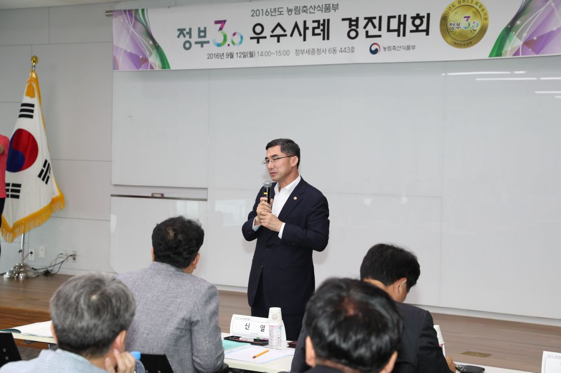 ¡ã»çÁøÀº 9¿ù 12ÀÏ Á¤ºÎ¼¼Á¾Ã»»ç¿¡¼ ³ó½Äǰ ºÐ¾ß ÀÚü ¡®Á¤ºÎ3.0 ¿ì¼ö»ç·Ê °æÁø´ëȸ¡¯¸¦ °³ÃÖÇÑ ÀÚ¸®¿¡¼ ÀÌÁØ¿ø Â÷°üÀÌ ¹ß¾ðÇÏ´Â Àå¸é(»çÁø Á¦°ø= ³ó¸²Ãà»ê½ÄǰºÎ).