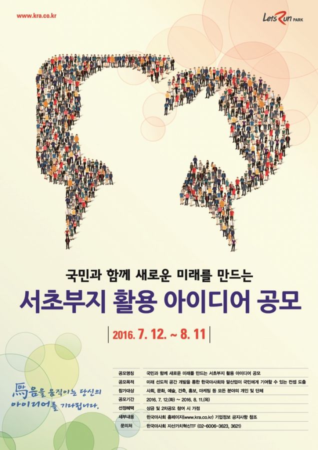 Çѱ¹¸¶»çȸ(ȸÀå Çö¸í°ü)°¡ 8¿ù 11ÀϱîÁö ¼ÃʺÎÁö¸¦ Ȱ¿ëÇϱâ À§ÇÑ ¾ÆÀ̵ð¾î °ø¸ð¸¦ ÁøÇàÇÑ´Ù. Çѱ¹¸¶»çȸ´Â 1,400.4§³ ¸éÀûÀÇ ¼ÃʺÎÁö¸¦ ¡®»çȸ°øÇå°ú °¡Ä¡Ã¢Á¶¡¯ÀÇ ¸í¼Ò·Î ¸¸µé±â À§ÇØ ¡®´ë±¹¹Î ¾ÆÀ̵ð¾î °ø¸ðÀü¡¯À» ½ÃÇàÇÑ´Ù. Âü°¡´Â ¾î´À ºÐ¾ßÀÇ ´©±¸µçÁö °¡´ÉÇÏ¸ç ±×·ìº° ÁøÇ൵ °¡´ÉÇÏ´Ù. ´ç¼±ÀÛ ¼ö¿¡µµ Á¦ÇÑÀÌ ¾øÀ¸¸ç äÅÃµÉ °æ¿ì Àϰý 3¹é¸¸¿øÀ» Áö±ÞÇÑ´Ù. Âü°¡´Â Á¦¾È¼ 15ºÎ(USB Æ÷ÇÔ), ½Åû¼, °ø¸ðÂü¿©ÀÚ ¸í´Ü µî Á¦Ãâ ¼·ù¸¦ µ¿ºÀÇØ ·¿Ã÷·±ÆÄÅ© ¼¿ï Àڻ갡ġÇõ½ÅTF¿¡ ¹æ¹® Á¢¼öÇÏ¸é µÈ´Ù.